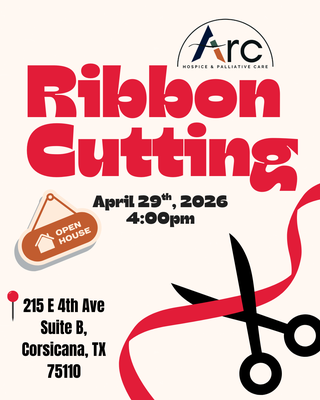 Join us as we celebrate the Open House & Ribbon Cutting of Arc Hospice & Palliative Care, 215 E 4th Ave, Suite B, Corsicana, TX 75110.